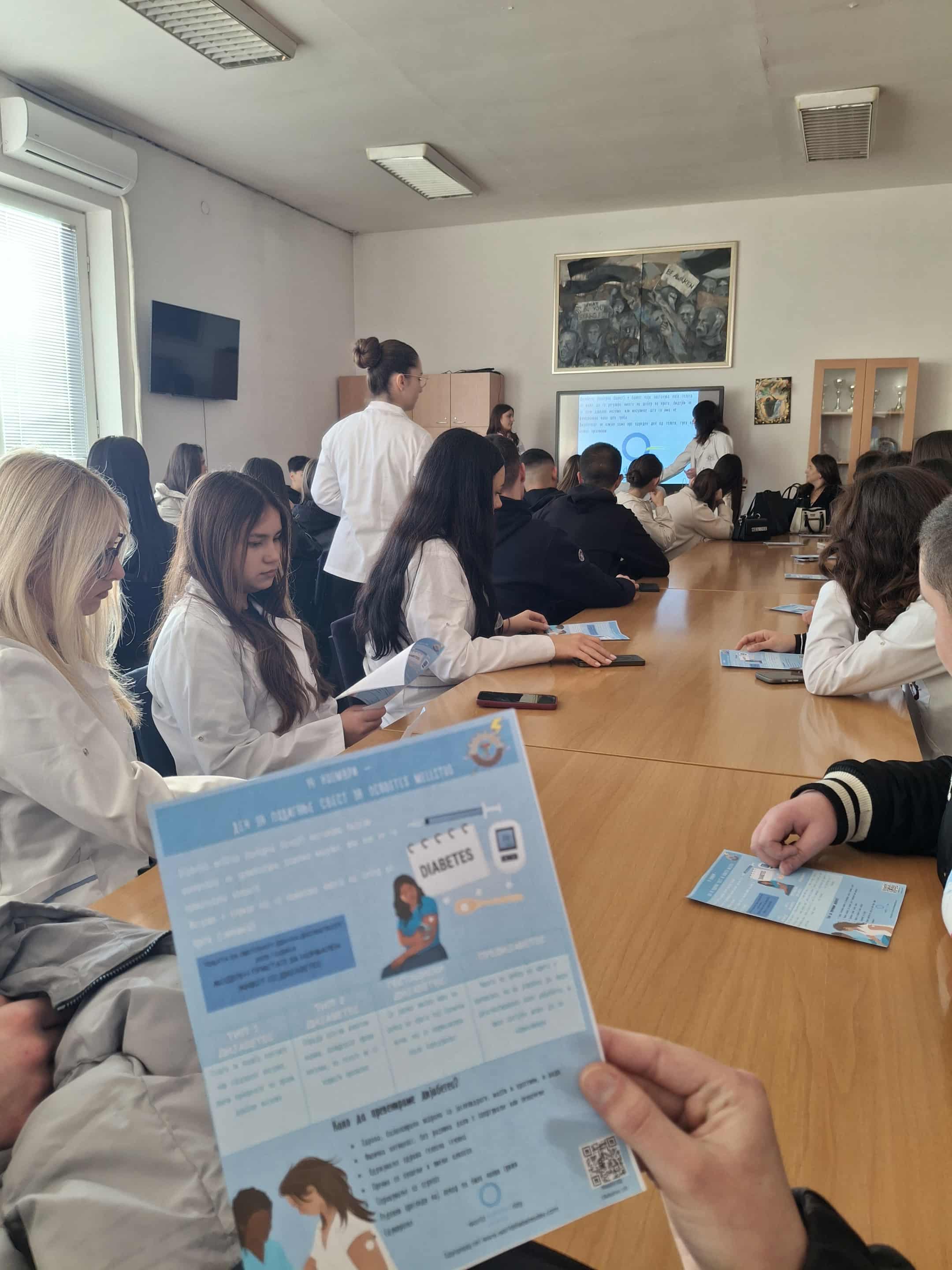 Во текот на овој ден, учениците од сите четири години и струки, како и наставниот и друг персонал, имаа можност да учат од експертите, кои ги осветлија клучните аспекти на шеќерната болест. Предавањето се состоеше од интерактивна презентација и видео-клипови кои на едноставен и интересен начин ги објаснија основните информации за дијабетесот.