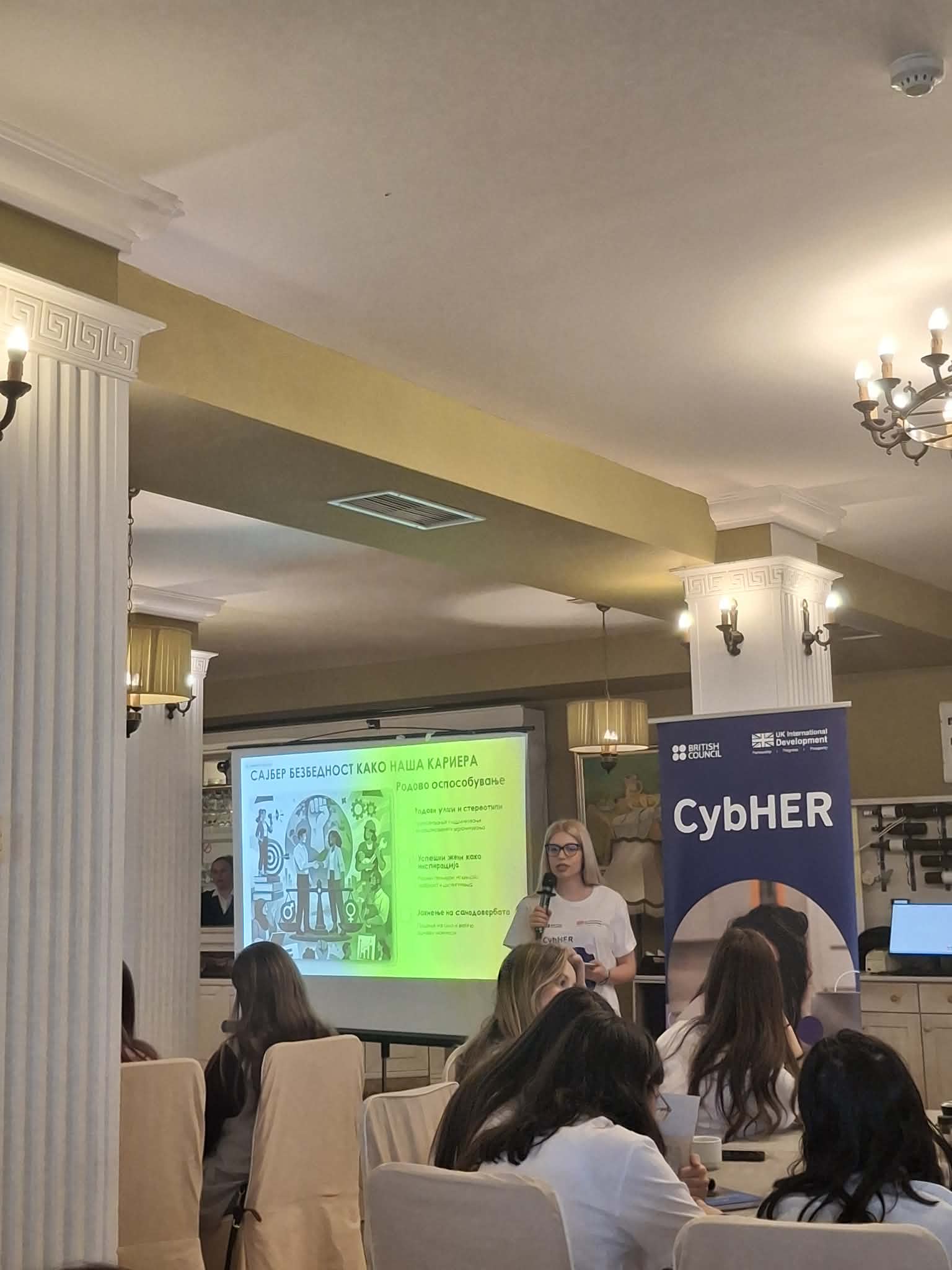 Минатиот викенд, од 13ти до 15ти февруари, ученички од нашето училиште учествуваа на сајбер кампот во Охрид, заедно со професорите Магдалена Трајановиќ и Марјан Спасиќ. На кампот учествуваа над 150 ученички од 9 училишта во државата. Тие споделуваа искуства и успешни сајбер-приказни на теми „Припаѓаме во сајбер-безбедноста“, „Учење преку работа“ и „Сајбер за добро“. Младите жени и девојки покажуваат сѐ поголема свесност за значењето на сајбер-безбедноста имаат зголемена самодоверба, вештини и мрежи за поддршка и се чувствуваат сигурни и инспирирани да изберат кариера во оваа област.